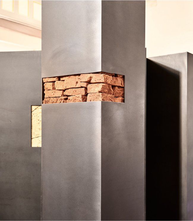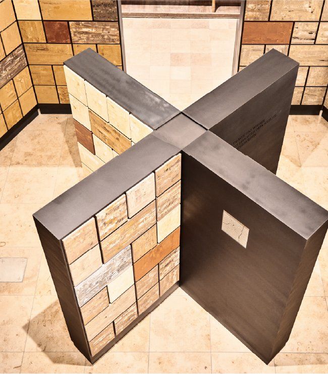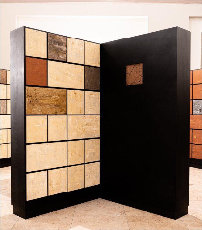 um den – aus heutiger Sicht –überdimensionierten Raum teilweise als Begräbnisstätte „mittendrin“ zu nutzen. Die Künstlerin verwendet in Ihrem Werk Erdschichten aus der Region und verdeutlicht hiermit das Zurückgehen zum Ursprung.